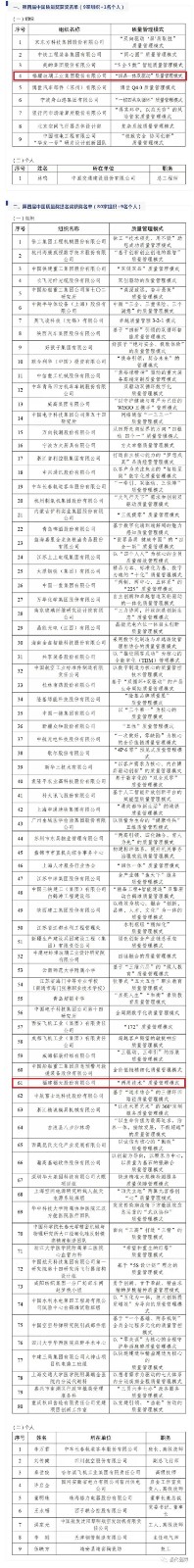 9月16日,在中国质量(杭州)大会上,第四届中国质量奖评选结果正式揭晓。在各地区各行业广泛推荐基础上,经中国质量奖评选表彰委员会评选,市场监管总局审定并核报国务院,决定对京东方科技集团股份有限公司、中铁工程装备集团有限公司、美的集团股份有限公司、福耀玻璃工业集团股份有限公司、博世汽车部件(苏州)有限公司、宁波舟山港集团有限公司、银行间市场清算所股份有限公司、北京空间飞行器总体设计部、中国核电工程有限公司“华龙一号”研发设计创新团队等9家组织及中国交通建设股份有限公司总工程师林鸣授予第四届中国质量奖;对徐工集团工程机械股份有限公司、福建福光股份有限公司等80家组织和李万君等9名个人授予第四届中国质量奖提名奖。