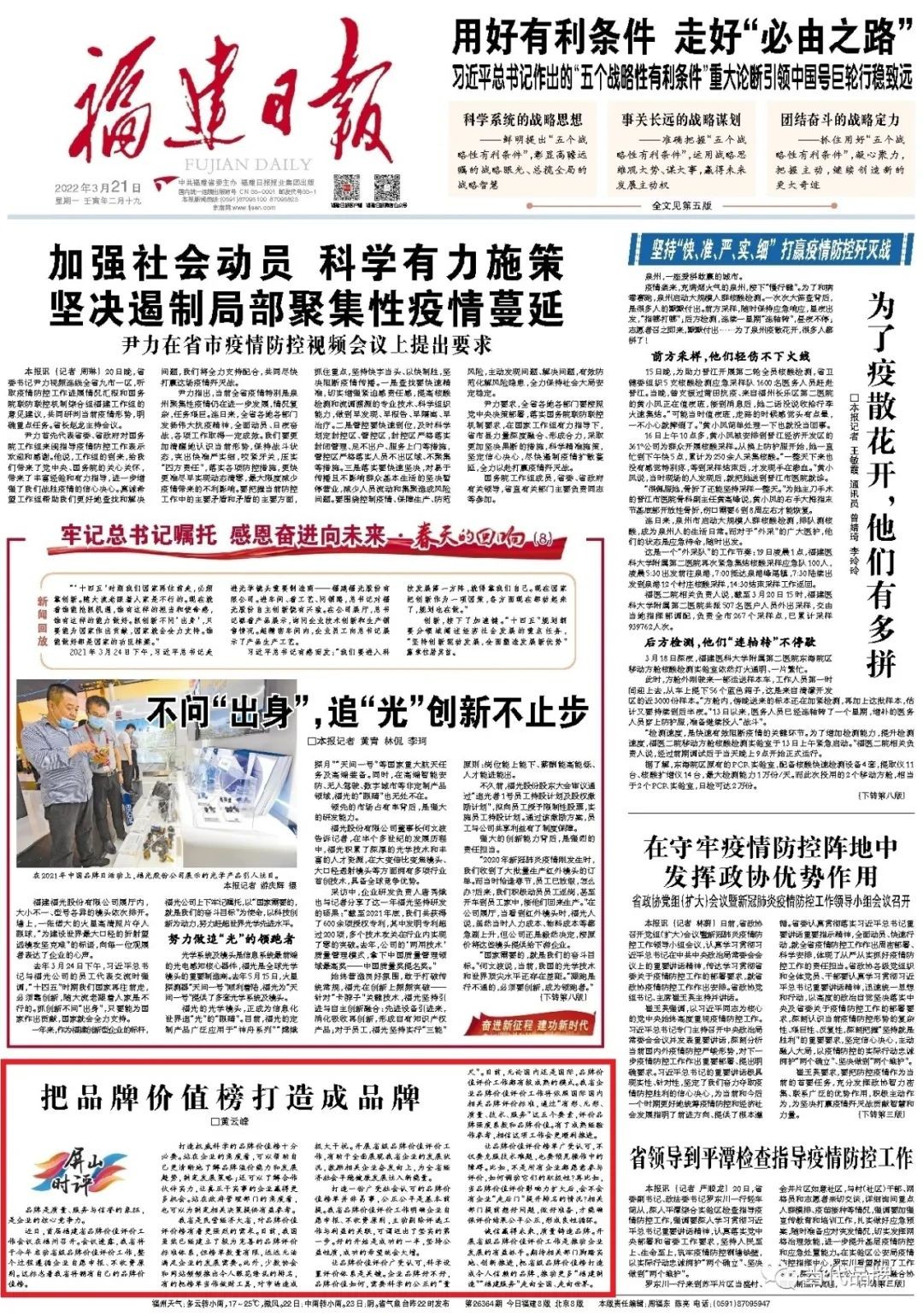 诚信赢得未来,质量铸造品牌。开展省级品牌价值评价工作是推动企业发展的有益抓手。期待相关部门脚踏实地、创新推进,把省级品牌价值榜打造成令人信赖的品牌,推动更多“福建制造”“福建服务”走向全国、走向世界。
