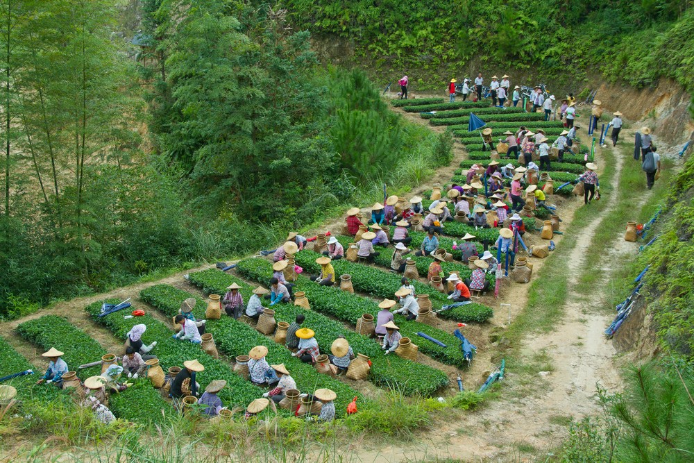 与此同时,福建茶叶年产量稳步增长,品种日益丰富,茶文化引领作用显著增强,茶科技赋能成效显著,茶业产销量持续攀升,茶产业经济规模不断扩大,福建正从茶产业大省迈向茶产业强省。截至2024年,福建茶园面积378万亩,毛茶产量56万吨,茶产业链综合产值突破1600亿元,位居全国第一,培育了19家茶业国家级龙头企业(居全国首位)和247家省级龙头企业,形成了茶饮料、茶食品、茶器具、茶化工、茶机械、茶文旅等全链条发展的涉茶产业体系。全省茶业从业人员超过300万,茶叶主产县农村居民人均可支配收入中,茶叶收入占比超40%,茶产业已成为福建农民增收和乡村振兴的重要支柱产业。