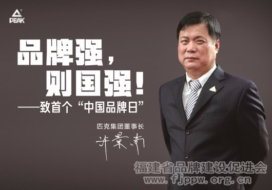 就在昨天,我们迎来了第一个“中国品牌日”。在全球步入品牌经济时代之际,做大做强中国品牌,是提升中国企业国际竞争力的必由之路,也是加快供给侧结构性改革的重要内涵和题中之义。在昨天这个值得中国企业铭记的日子,立志要将匹克打造成“中国人的国际品牌”的匹克集团董事长、匹克品牌创始人许景南感到异常的兴奋。“品牌强则国强,强大的国家必然催生强大的品牌。”许景南表示,“‘中国品牌日’的设立,将会催生更多的中国品牌成为国际品牌。”