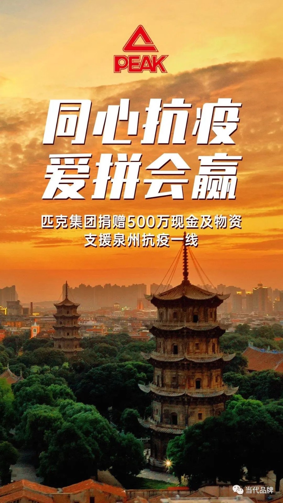 匹克集团捐赠500万现金及物资驰援泉州抗疫前线。