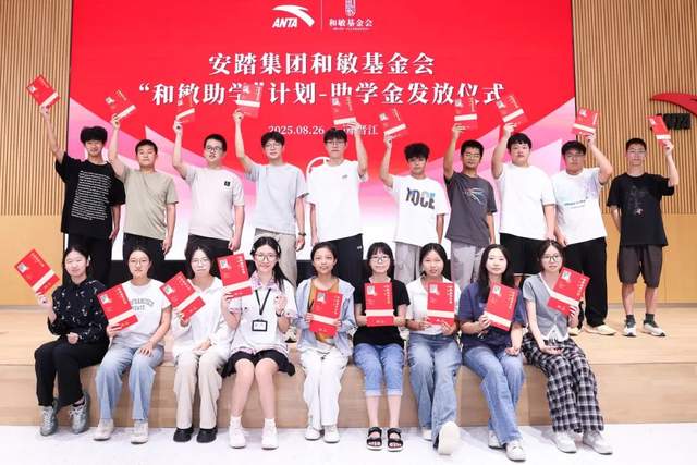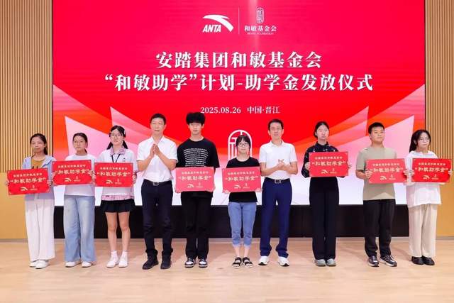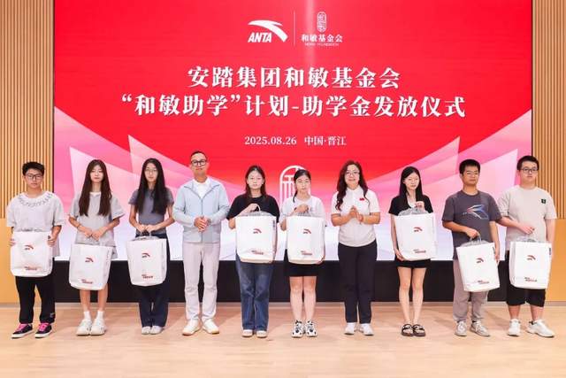 8月26日下午,安踏集团和敏基金会的主要公益项目——“和敏助学”计划2025级准大学生助学金发放仪式在安踏集团982中心举行,助力有梦想的大学生完成四年大学学业。晋江市副市长吴尊意,晋江市教育局局长施嘉奕,安踏集团董事局副主席、和敏基金会副理事长丁世家,以及40名2025级“和敏助学”受助学生代表、安踏集团受助员工代表共同出席本次活动。