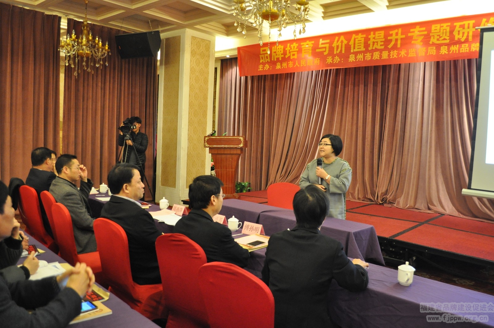 本次培训班由泉州品牌发展中心副主任李梅茹主持,泉州市品牌价值评价工作领导小组办公室主任、泉州市质量技术监督局副局长林志良作开班动员讲话。培训班邀请了中国品牌建设促进会秘书长郑志受、福建省品牌建设促进会专家委员会专家周燕萍讲授品牌建设的理论方法,邀请了安溪铁观音、匹克、闽发铝业等品牌价值较高的上榜品牌代表分享品牌价值提升的经验,旨在指导企业加强自主品牌建设,有效提升品牌价值,打造泉州品牌正能量。